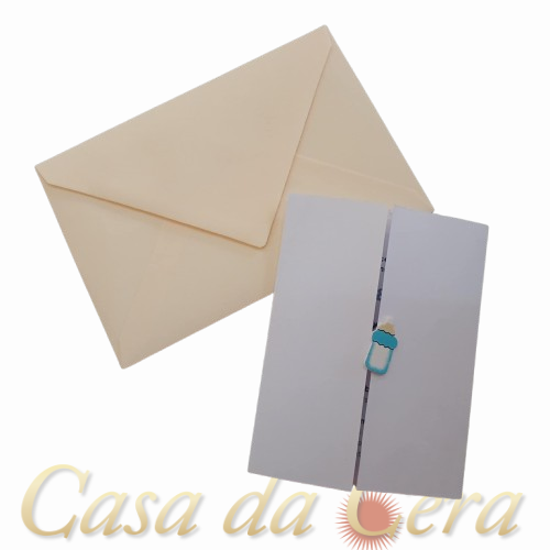 Convite de Batismo Menino acompanhado de envelope tamanho 17,5cm comprimento por 12cm altura.