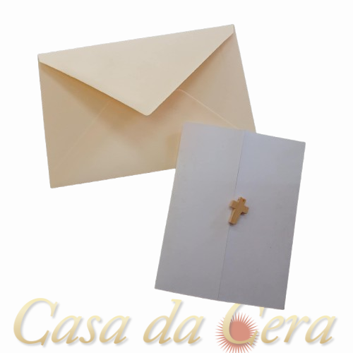 Convite de Comunhão Menina acompanhado de envelope tamanho 17,5cm comprimento por 12cm altura.