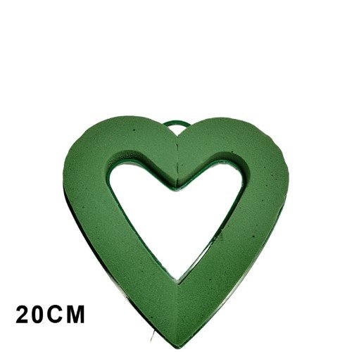 Coração com base de esponja mede +/- 20 cm de altura por +/- 19cm largura.