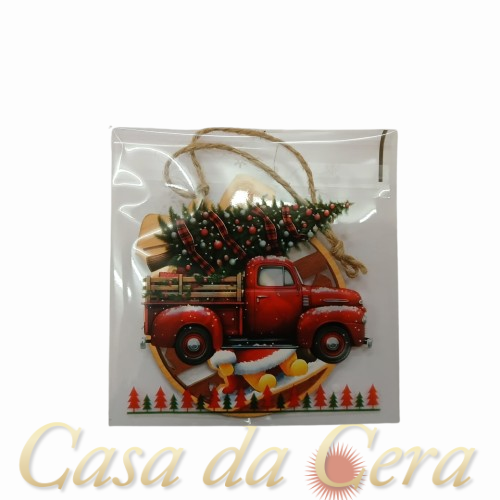 Placa decorativa de Natal em madeira, trabalhada em recorte 2D, com acabamento delicado e design festivo. Acompanha saco de embalagem de Natal, pronta para oferecer.